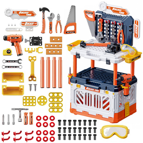 Juego de herramientas de montaje para niños, juego de simulación, caja de herramientas de mesa de construcción de plástico para niños, juego de juguetes con taladro simulado